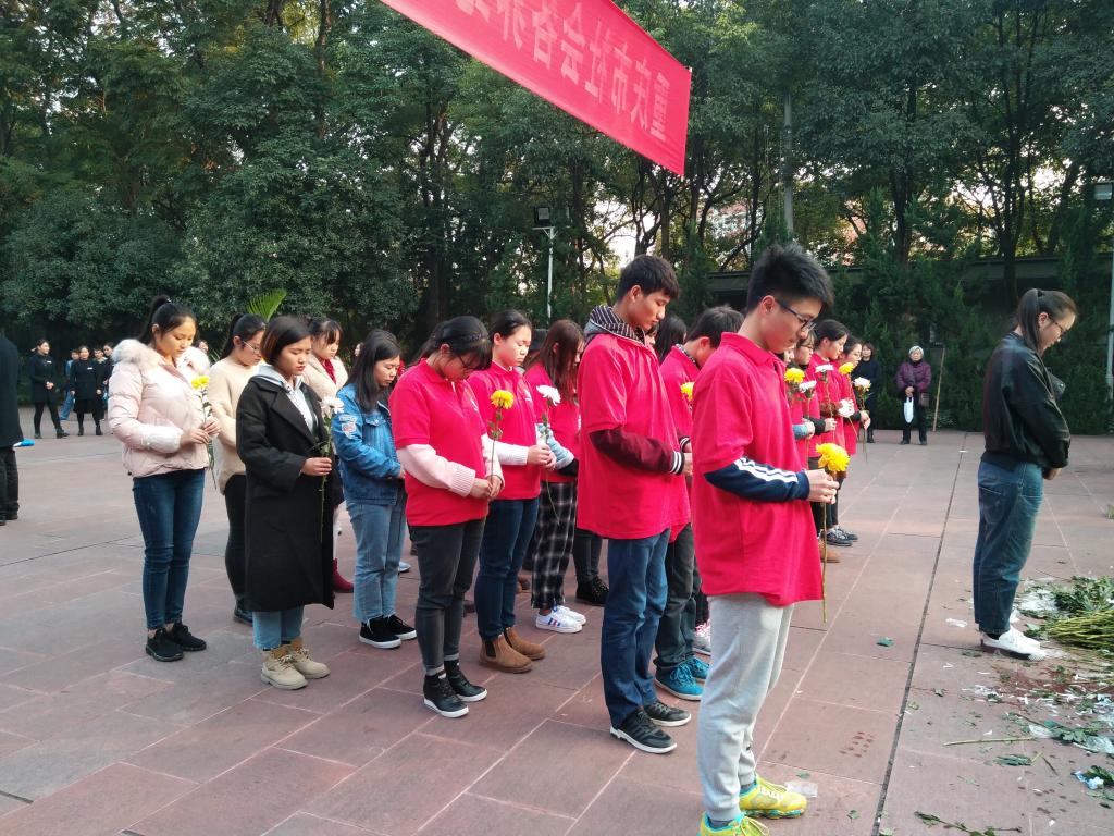 默哀结束后,由437437必赢国际党员服务站站长向“11;27”殉难烈士敬献花篮。同学们井然有序地手拿纯白、金黄的菊花,献给烈士墓内的英灵。随后,同学们各自静静地绕场一周瞻仰民族英雄的革命事迹,怀着无比诚挚的心情缅怀为革命事业取得胜利而献出宝贵生命的先烈们。