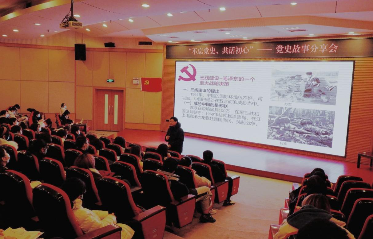 8点30分,主持人向大家介绍了研究“三线建设”史的优秀老党员——李治贤老师,并邀请其上台为大家作党史故事分享。李治贤老师结合研究成果与生活感悟,讲述了党在“三线建设”时期的光辉历史,分别从三线建设的提出、区域划分、建设成果、继承与弘扬三线建设精神四个方面出发,生动形象、深入浅出地向站员们介绍了三线建设的具体内容及重要意义。他提出,广大青年应该认真学习三线建设精神,在此过程中接受精神洗礼,提升思想境界,用实际行动为实现第二个百年奋斗目标而奋斗。站员们深受鼓舞,表示会更加珍惜这来之不易的幸福生活,传承党的优良作风,主动肩负起实现中华民族伟大复兴的历史重任。