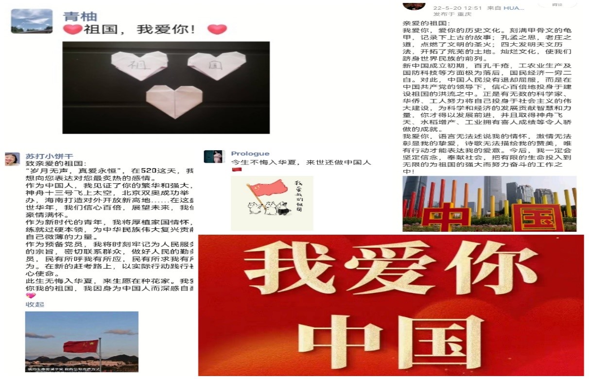 活动结束后,站员们纷纷表达了自己的感悟与收获。来自20级经济学一班的黄海芳表示:“当今世界局势纷繁复杂,和平生活更显珍贵,生活在和平之下的我们要时刻牢记这岁月静好背后为你我负重前行的人们。在520这个特殊的日子,我也在此次活动中向我们的祖国母亲表白。作为当代青年,我们应对祖国怀有感恩之心,将对祖国的赤诚之爱化作未来持续奋斗的动力,助力实现中华民族伟大复兴的‘中国梦’。”