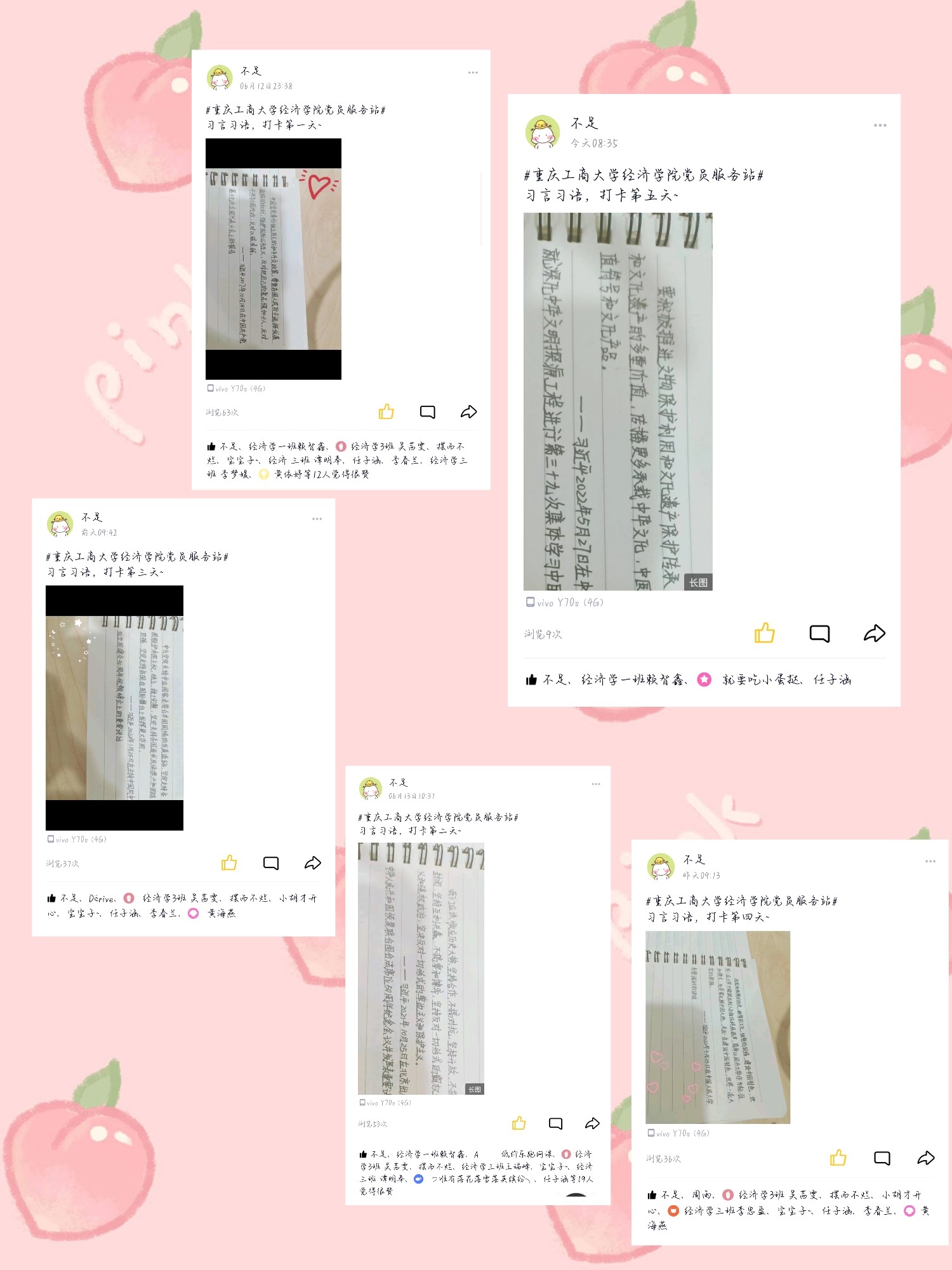来自20级税收二班的李昂表示:“生逢盛世,不负韶华!在最美好的年华里,应该努力追寻最好的自己!”来自20级国贸三班的李丹认为:“这次活动非常有意义,除了自己每天在QQ空间打卡学习,我也看到了其他站员们的学习感悟,积累了更多关于党的知识和内容,这对我们来说也是一种学习。”