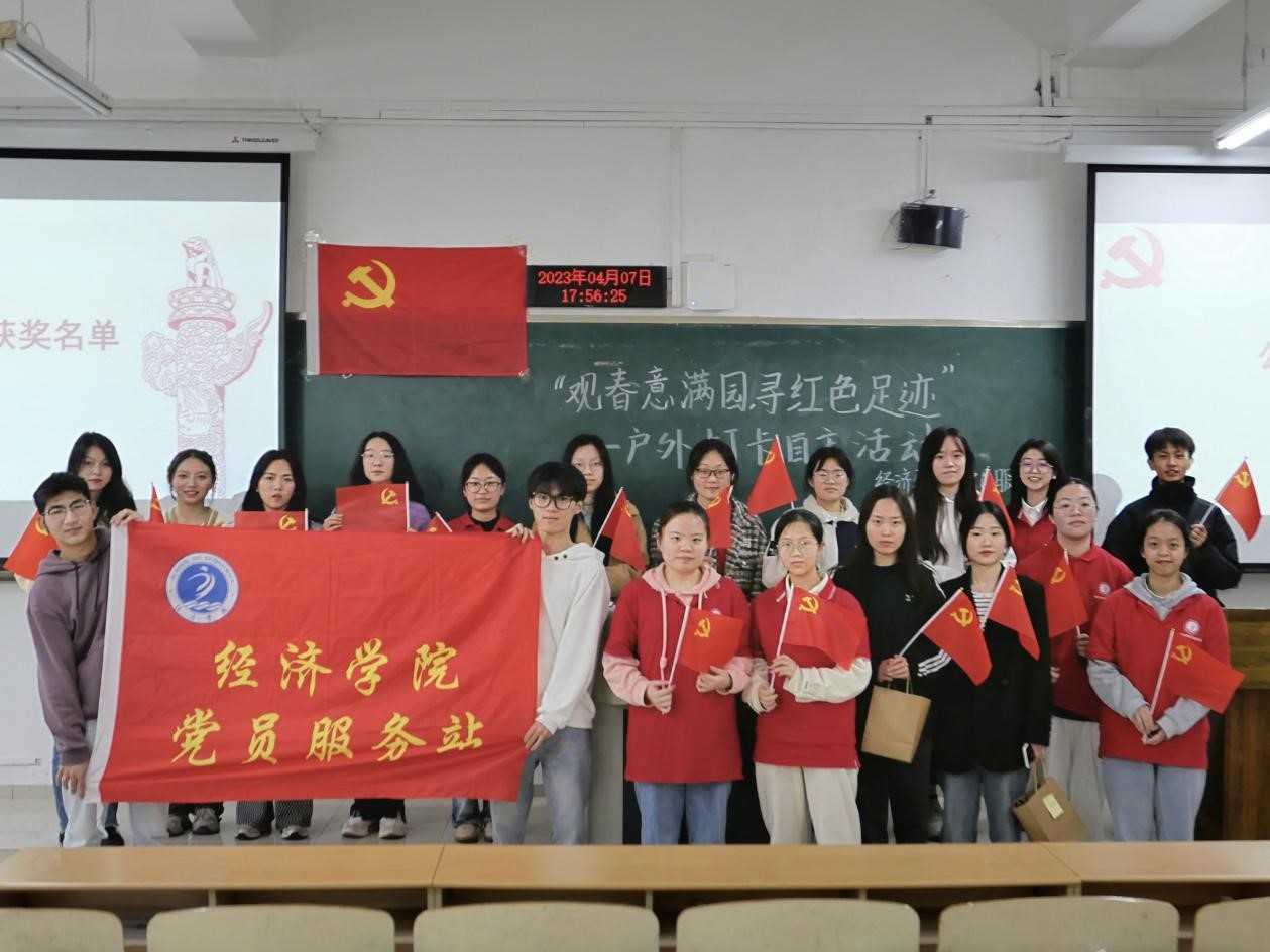 2023年是全面贯彻落实党的二十大精神的开局之年,是为全面建设社会主义现代化国家奠定基础的重要一年。为了把稳“对党忠诚”之舵,划动“奋进担当”之楫,鼓励站员们坚定理想信念、涵养进取品格,437437必赢国际党员服务站于4月7日举办了“观春意满园,寻红色足迹”——户外打卡活动。本次活动由21级财政一班的杨天瑞同学主持,共80余名站员参与其中。
