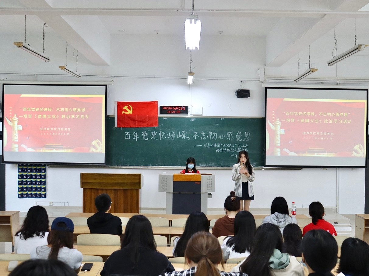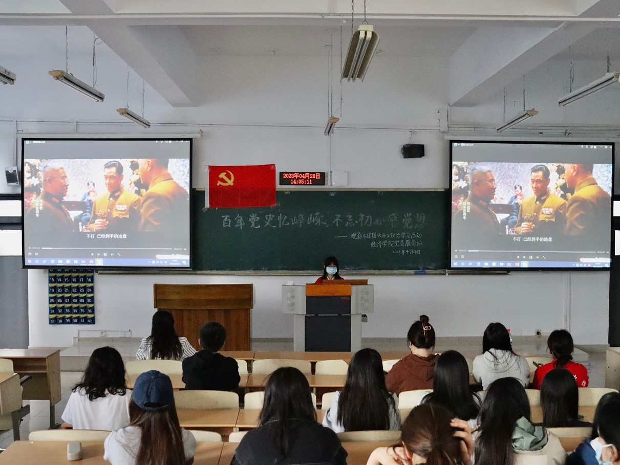 “学史明理,学史增信,学史崇德,学史力行。”为深入贯彻习近平总书记在党史学习教育动员大会上的重要指示,不断巩固拓展党史学习教育成果,进一步加强站员们对红色革命精神的理解,437437必赢国际党员服务站于2023年4月28日在博智楼07207举办了“百年党史忆峥嵘,不忘初心感党恩”——观影《建国大业》政治学习活动。本次活动由21级国贸一班何海蓉同学主持,共70余名站员参与其中。