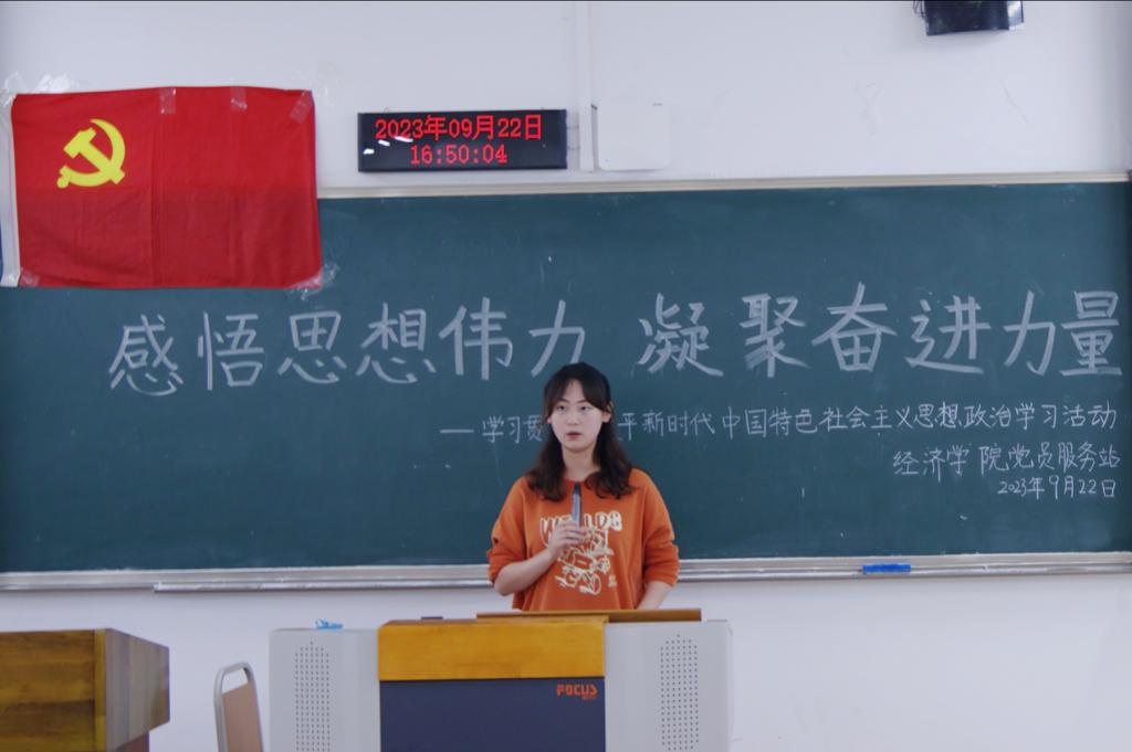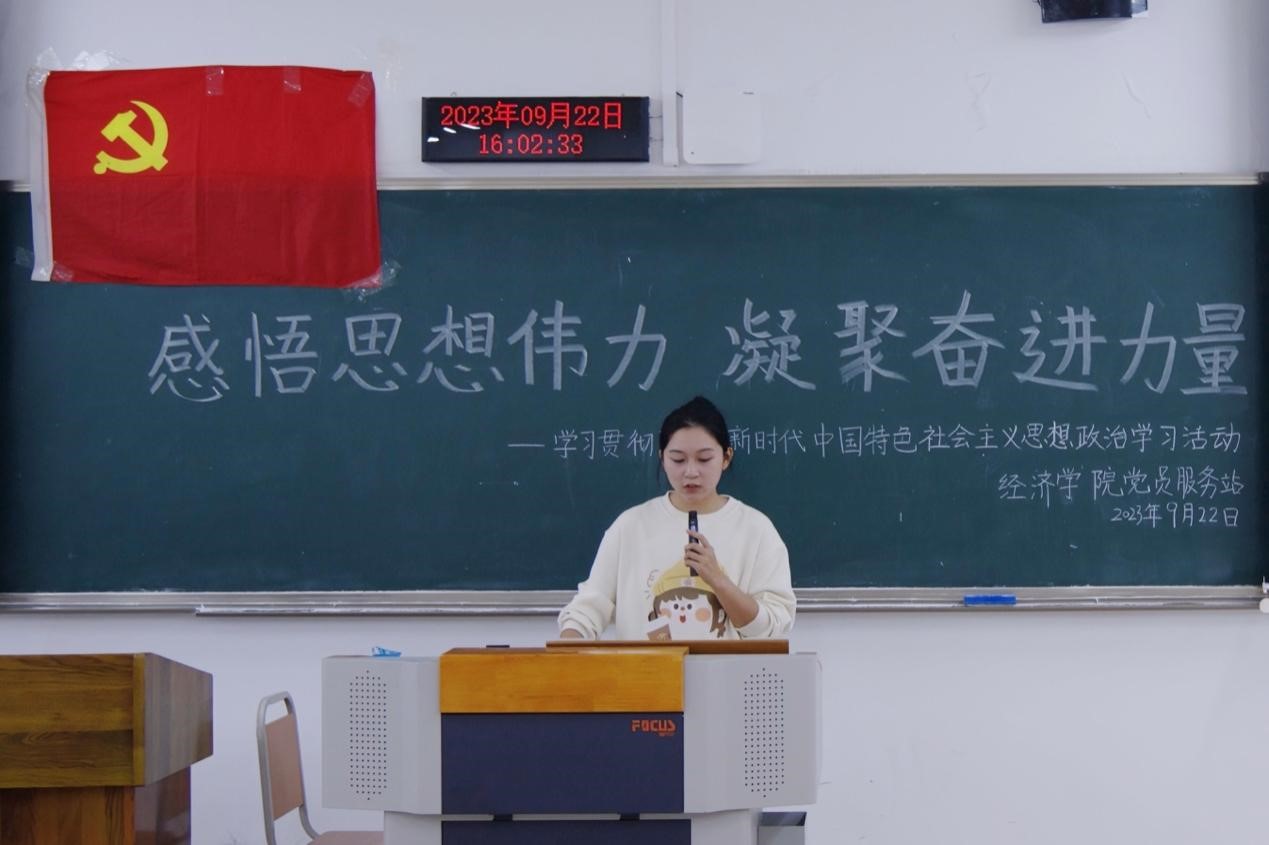 2023年是全面贯彻落实党的二十大精神的开局之年,为深入学习贯彻习近平新时代中国特色社会主义思想,进一步增强站员的思想道德素养,437437必赢国际党员服务站于9月22日在博智楼07207教室举办“感悟思想伟力,凝聚奋进力量”--学习贯彻习近平新时代中国特色社会主义思想政治学习活动。本次活动由22经济学二班陈意菲同学主持,四十余名站员参与其中。