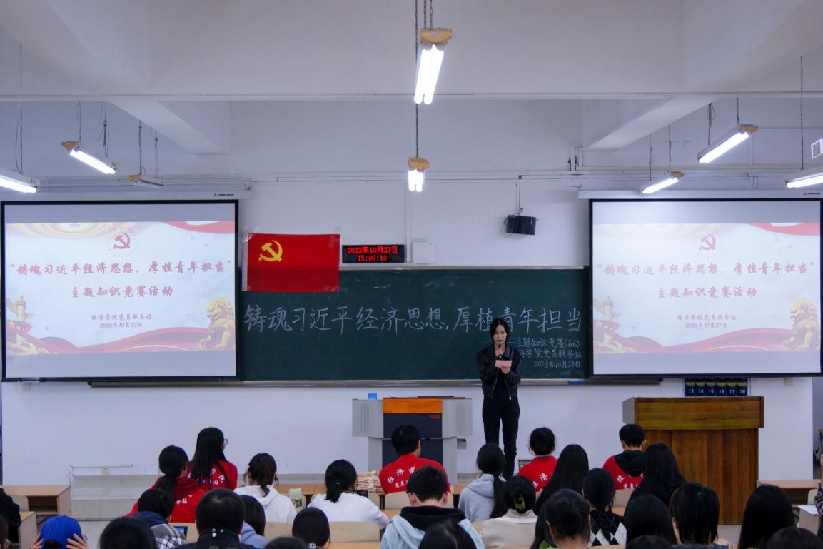 新时代孕育新理论,新理论引领新实践。为立足“学与思”“践与悟”,从青年学子的角度,深刻阐述习近平新时代中国特色社会主义经济思想蕴含的科学性、人民性、时代性、开放性,充分体会其真理力量、理论价值和实践伟力,进一步增强站员们对习近平新时代中国特色社会主义经济思想的认识,体会其中深刻内涵,437437必赢国际党员服务站于10月27日在博智楼07208举办了“铸魂习近平经济思想,厚植青年担当”--主题知识竞赛活动。本次活动由22国贸二班孙佳琳同学主持,共80余名站员参与其中。