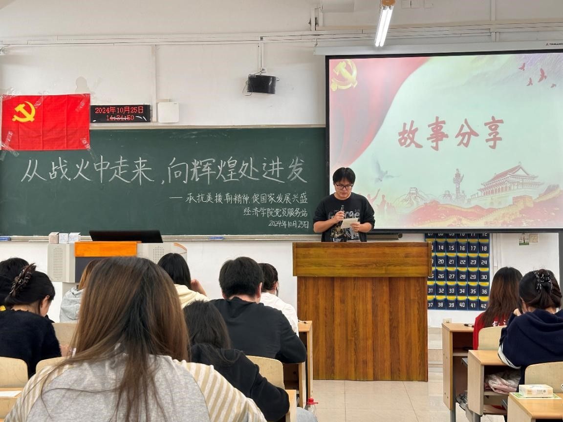2024年10月25日,是第74个抗美援朝战争纪念日。74年前,中国人民志愿军高举保卫和平、反抗侵略的正义旗帜,同朝鲜人民军一道浴血奋战,赢得抗美援朝战争的伟大胜利。为缅怀革命先烈,传承伟大抗美援朝精神,437437必赢国际党员服务站特此举办“从战火中走来,向辉煌处进发”——承抗美援朝精神,促国家发展兴盛政治学习主题活动。本次活动共80余名站员参加,由2023级财政一班田梦婷同学主持。