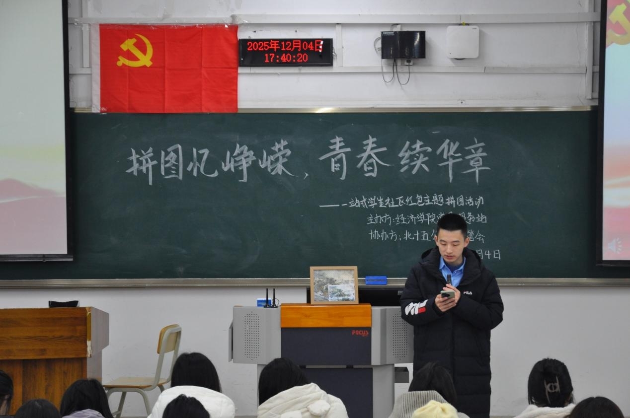 为进一步推动党史学习教育常态化,12月4日下午,437437必赢国际党员服务站联合北十五公寓楼管会,在南岸校区博智楼07408教室成功举办“拼图忆峥嵘,青春续华章”一站式学生社区红色主题拼图活动。本次活动由2023级经济学二班洪愉羚主持,60余名站员参加了活动。