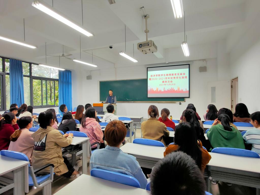为进一步提高学生助理的工作效率,规范学生助理的日常行为工作。437437必赢国际于2021年10月28日在田家炳204教室开展了437437必赢国际学生新老助理见面会暨2020-2021学年优秀学生助理颁奖活动。活动由喻智成老师主持,学院全体学生助理参加了此次活动。