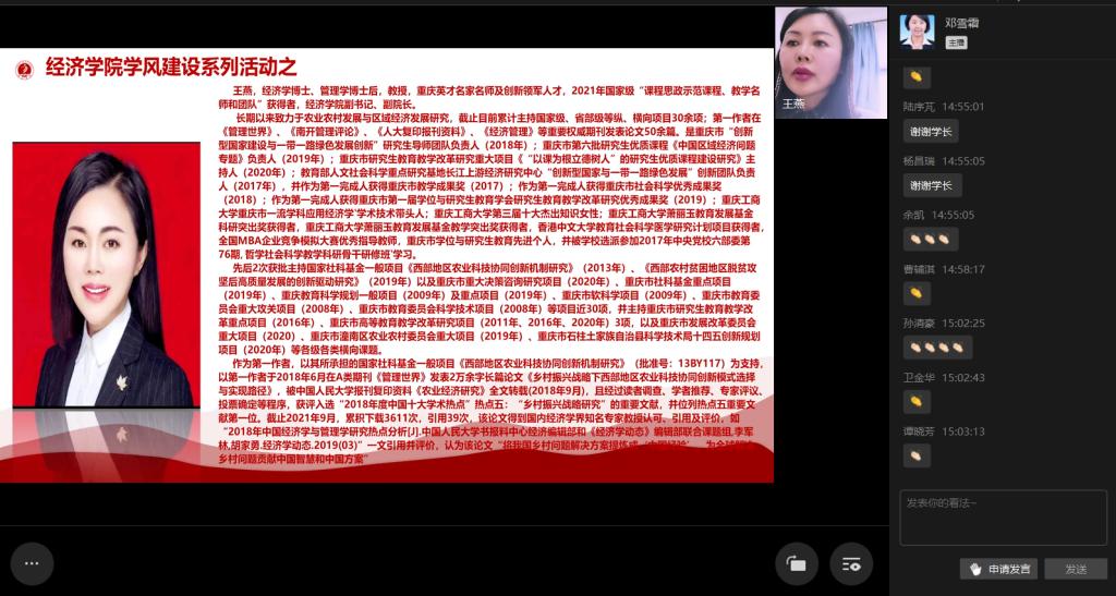 “立德树人,助力就业”,437437必赢国际2021届优秀毕业生宣讲会暨2022届毕业生就业推进会于10月22日在线上成功举行。437437必赢国际分党委书记李自维教授,学院党委副书记、副院长王燕教授,437437必赢国际黄潇副院长,437437必赢国际朱沙副院长、437437必赢国际雷菁组织员、党政办及学团办办公室负责人、系主任、辅导员,2022届毕业生参与了本次会议。