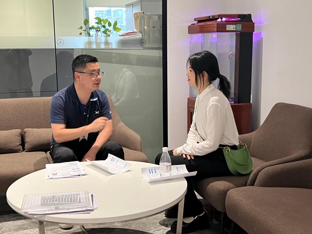 进入商社汽贸奔驰麒兴店,第一位负责人从汽车保有量、新旧车比、消费金融、新能源车、新零售几个方面对汽车行业做了整体介绍,并对大学毕业生到汽贸要经历轮岗实习、确定岗位、1-2年内可升至主管岗位、3-5年升至经理总监或更高职位大致职业生涯做了介绍。第二位负是商社麒兴的售后负责人,他用一句经典的“既能奔驰何必将就”作为发言主线,侧重讲了良好的人际关系能够带来被认可被尊重、生活上得到帮助、自我能力的提升、获得线索增加收入、为未来创造机会等方面进行阐述售后服务的重要性。第三位销售负责人,则从提高销售能力,必须培养文案编写、销售流程执行、价格谈判、客户心理把握、团队协作、新产品学习、承受委屈,坚强的意志力等方面的能力。他总结到,销售是对人品、情商、逻辑、规则的执行,学习能力,意志力的综合磨练。所有参与的同学听后觉得收获满满,感觉三位负责人能够走到今天这一步,与他们平时的努力认真是分不开的。最后一个环节是面试环节,20多个同学被分成4个小组,商社麒兴店的各个部门负责人依次对同学们进行了初步面试,同学们都以自己最佳的状态来展现,面试官们经过初步筛选,确定了进入第二轮面试的人选。