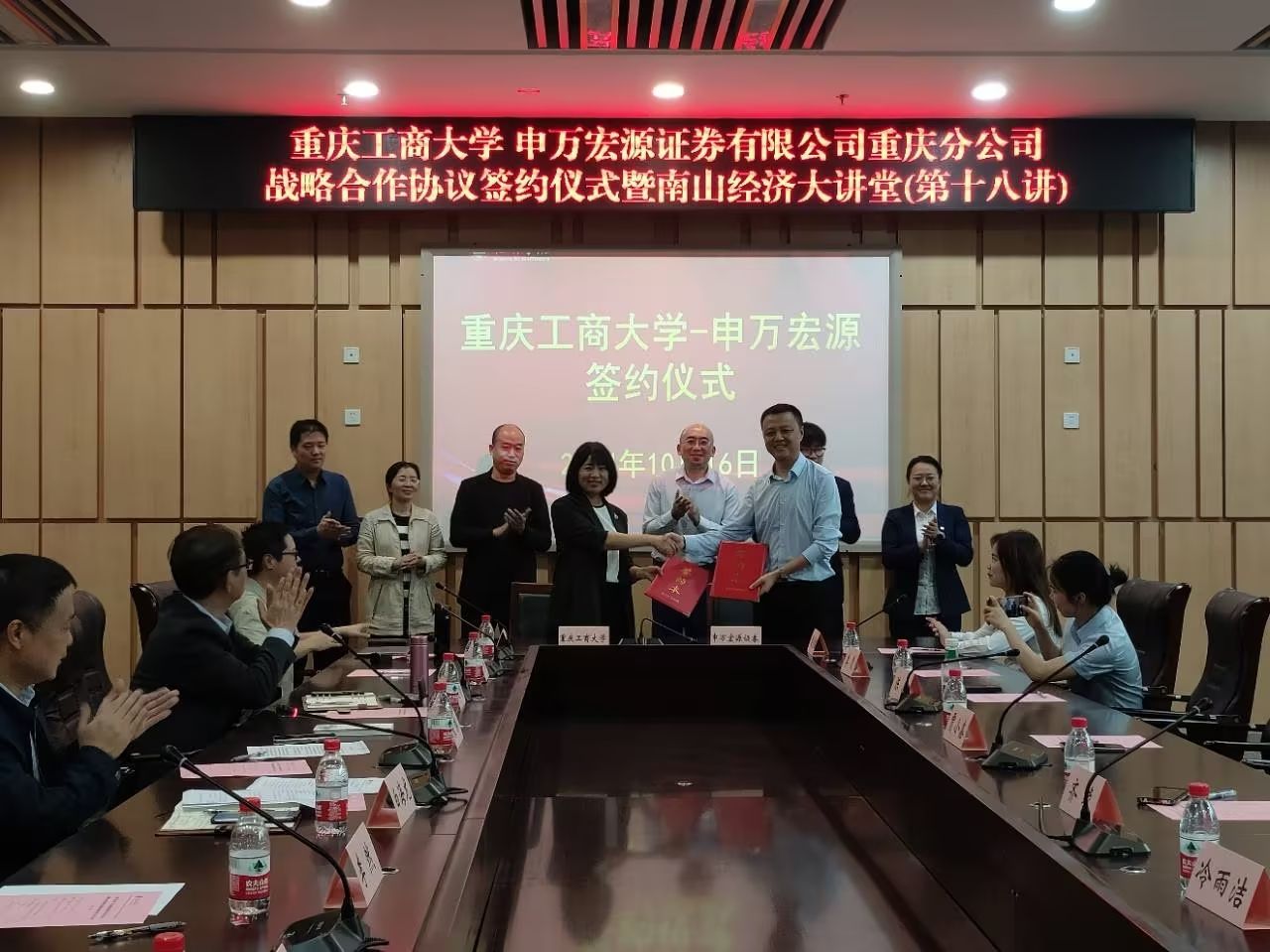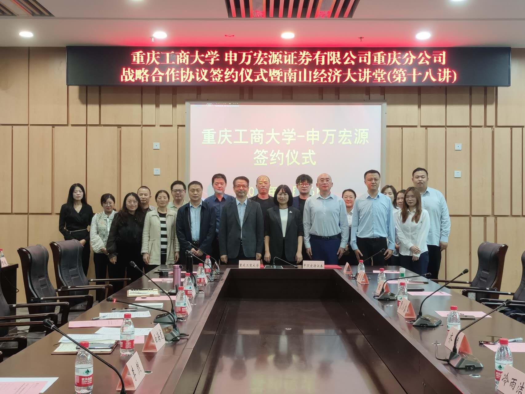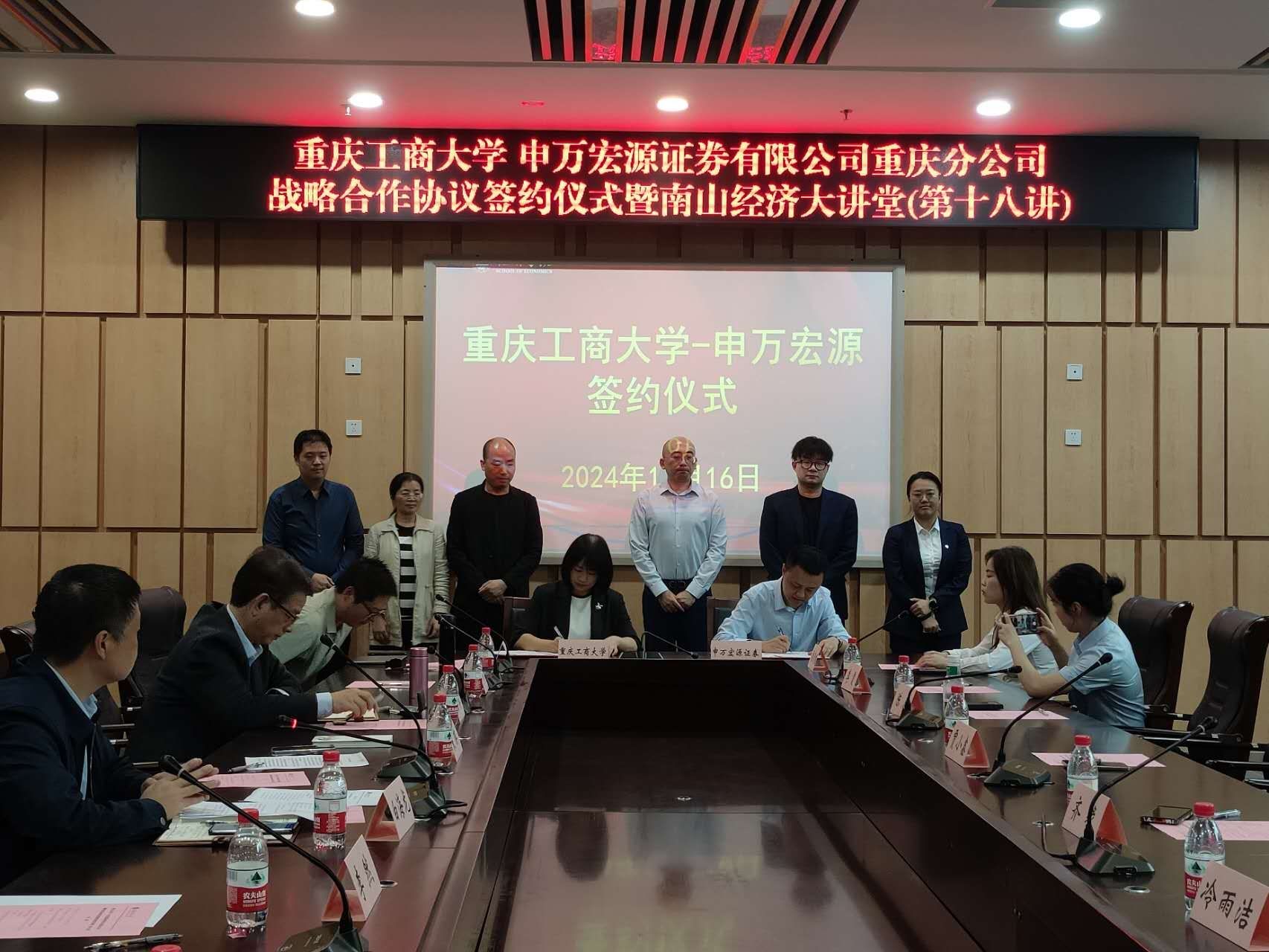 秋风送爽,丹桂飘香,10月16日,437ccm必赢国际与申万宏源证券重庆分公司战略合作协议签约仪式在学校图书馆第五会议室隆重举行,申万宏源证券重庆分公司党总支委员、工会主席、营业部总经理贾小鑫,党总支委员、营业部副总经理齐缘,437437必赢国际院长宋瑛,党委副书记白海龙出席仪式。437437必赢国际教师代表、研究生代表、本科生代表共计60余人参加签约仪式。