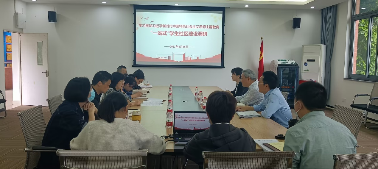 为深入开展学习贯彻习近平新时代中国特色社会主义思想主题教育调研工作,推进我校“一站式”学生社区建设,4月28日上午,学校党委常委、副校长李国军带队到437437必赢国际开展了学习贯彻习近平新时代中国特色社会主义思想主题教育“一站式”学生社区建设调研会。学生处处长申卫东、副处长张朝毅、副处长林璐、学生公寓学生工作办公室主任冯湛陪同调研,437437必赢国际党委书记李自维、副书记白海龙、专职组织员雷菁、办公室主任严艳及全体辅导员参加调研会。会议由申卫东处长主持。