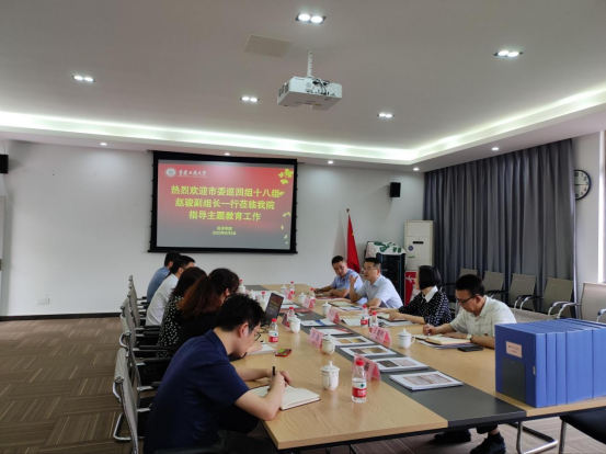 6月8日下午,市委巡回指导十八组赵骏副组长一行到437437必赢国际调研指导主题教育工作,通过实地考察、座谈交流、查阅资料等方式,全面了解437437必赢国际主题教育开展情况,对推进主题教育作全面指导。学校党委常委、组织部部长郑夕春,机关党委书记兼组织部副部长王建明,437437必赢国际党委班子成员、各支部书记及师生代表参加调研。