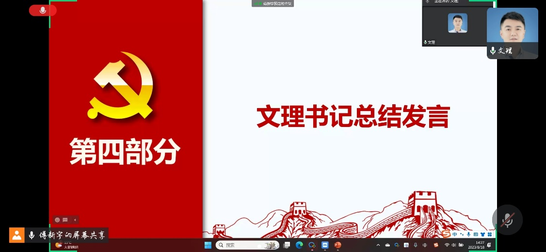 最后,支部书记文理老师总结发言,鼓励四支部全体党员不忘初心,坚持自我信念,度过八月份这一关键学习阶段。