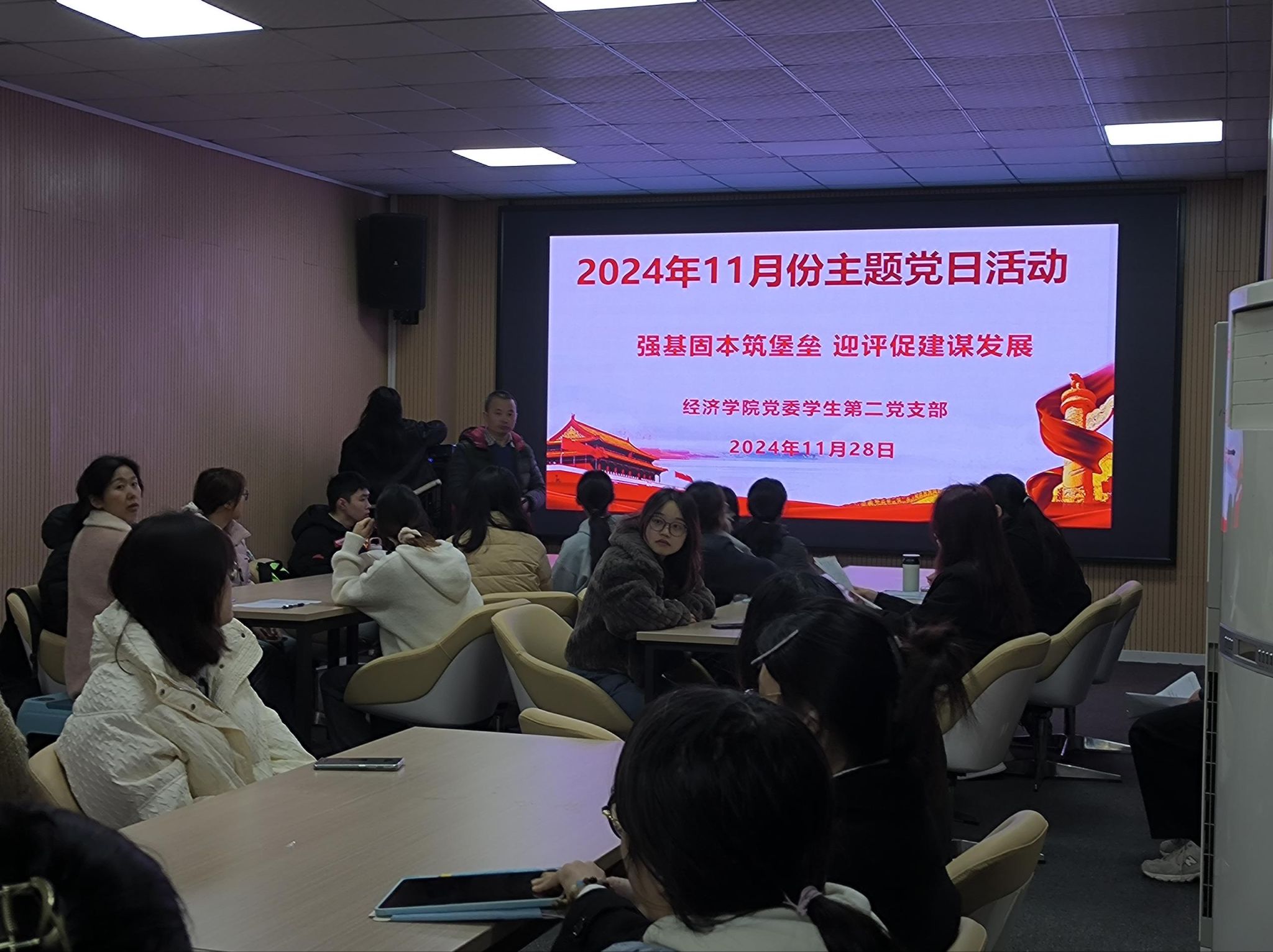 为深入贯彻学习习近平总书记的重要讲话精神,筑牢理想信念基石。11月28日,437437必赢国际党委学生第二支部顺利开展“强基固本筑堡垒,迎评促建谋发展”主题党日活动。学生第二支部全体党员、入党积极分子代表共计40余人参加。主题党日活动由支部书记喻智成主持。