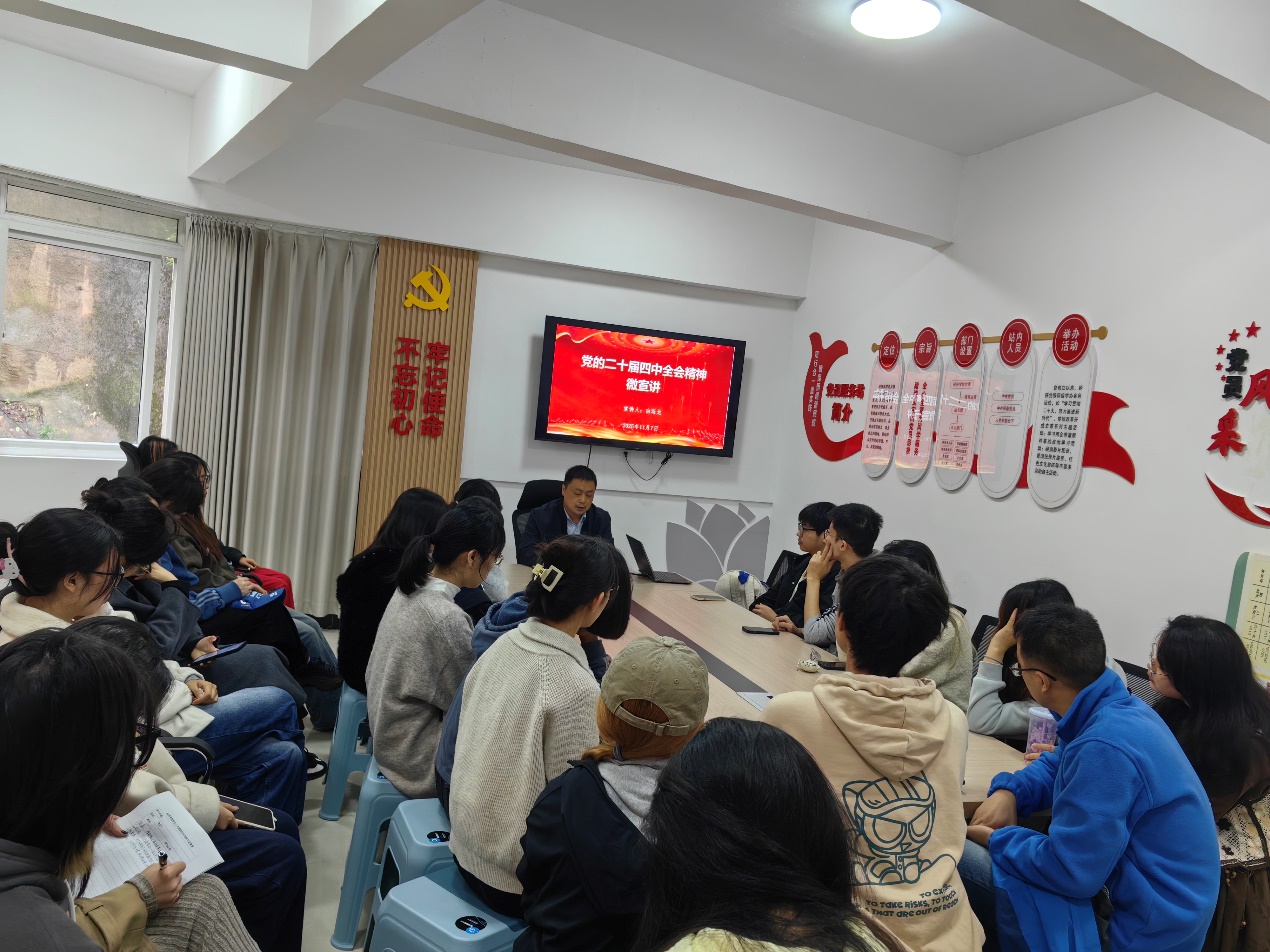 为深入学习贯彻党的二十届四中全会精神,引导青年党员将理论学习与专业实践紧密结合,11 月 7 日,437437必赢国际党委副书记白海龙同志在北十五党团活动室为学生第三党支部全体党员讲授专题党课。党课以“党的二十届四中全会精神”为核心主题,结合经济学专业特色展开深度解读,让理论学习既有思想高度又有实践温度。