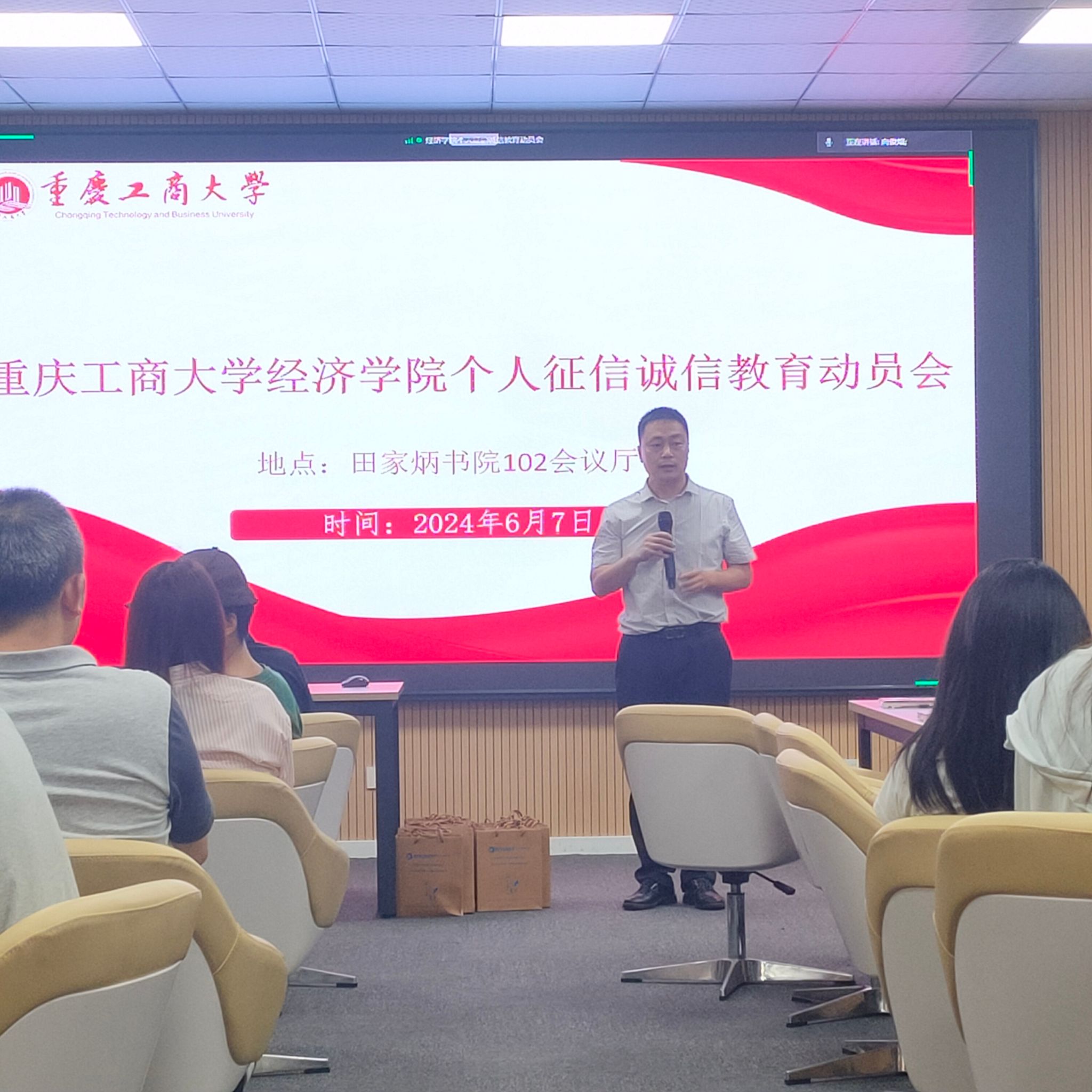 6月7日下午,为进一步推动学院产学研融合,引导同学们重视个人征信记录,提高反诈防骗能力,树立正确的消费观、成才观和价值观,申万宏源证券重庆分公司齐缘总经理一行应邀来学院作个人征信暨反诈防骗宣讲活动。学院党委白海龙副书记、学院国内合作负责人喻智成老师、200余名贷款毕业生和在校学生代表通过线上线下结合的方式参加本次活动。