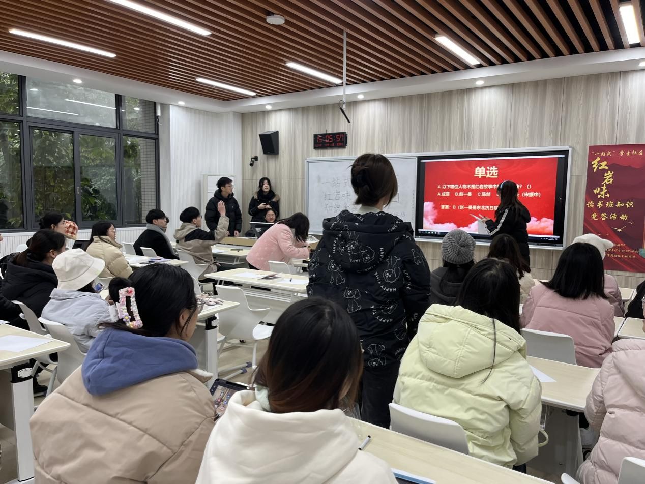 知识竞答环节,分为小组积分赛和个人积分赛两轮,题目涵盖了红岩精神、重庆市情各方面,包括狱中斗争的艰苦历程、红岩人物事迹等。参赛同学们凭借深厚的红岩知识储备,稳健作答,比分交替上升,现场气氛紧张。在个人抢答环节中,同学们争先恐后、反应迅速,展现出了扎实的历史知识功底,精彩的表现赢得了大家的阵阵掌声。经过激烈的角逐,崔思宇、朱玲、余浩男3位同学在个人积分赛中脱颖而出,读书班第三小组、第五小组分别获得一等奖和二等奖。