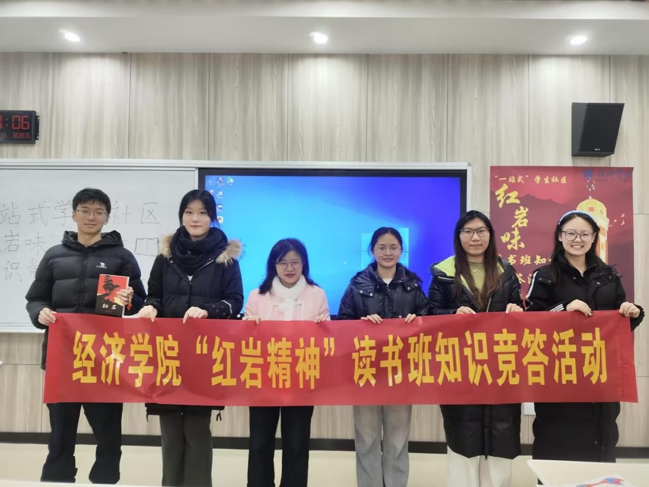 为充分发挥红岩精神对新时代青年的激励作用,进一步激发学生社区党建引领新动能,12月13日,437437必赢国际2022级国际经济与贸易专业、2022级贸易经济专业学生在田家炳108教室开展了翠湖书院学生社区“红岩精神”读书班知识竞答活动,主要分为读红岩书籍感悟红岩精神、讲红岩故事传承红岩基因、答红岩知识争当红岩先锋三个环节。437437必赢国际辅导员陈璐、“红岩精神”读书班40余名成员共同参加。