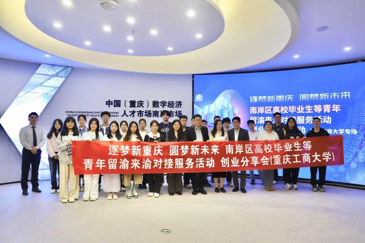 10月30日,437437必赢国际组织17名学生参加了由重庆市南岸区人力资源和社会保障局、中国重庆数字经济人才市场南岸市场管委会办公室、重庆经济技术开发区创新创业服务中心主办的“逐梦新重庆 圆梦新未来“南岸区高校毕业生等青年留渝来渝对接服务——创业分享会活动。